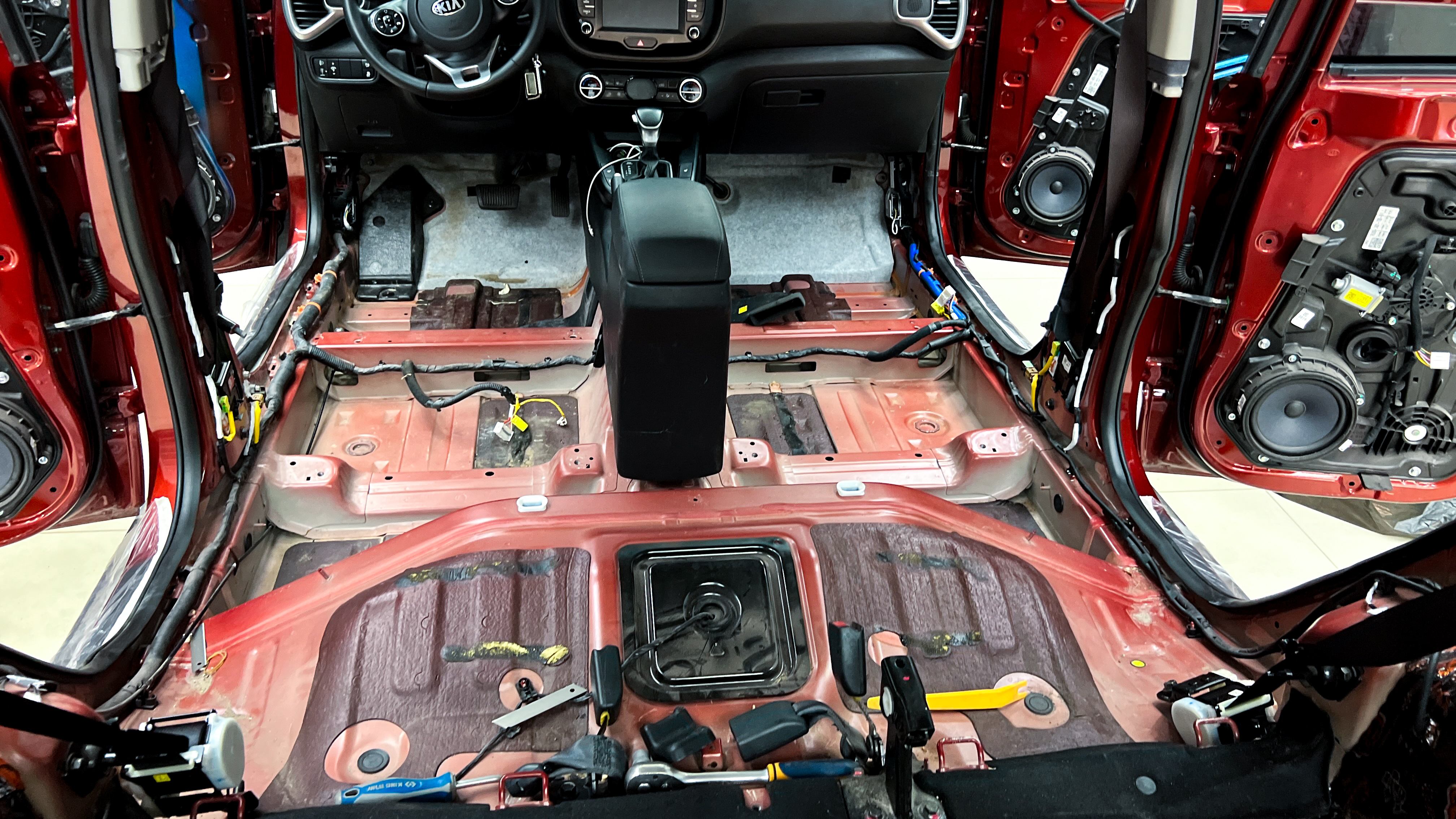 виброизоляция Киа Соул Этот слой поможет нам улучшить звучание акустики, а также сделать закрывание дверей более приятным.