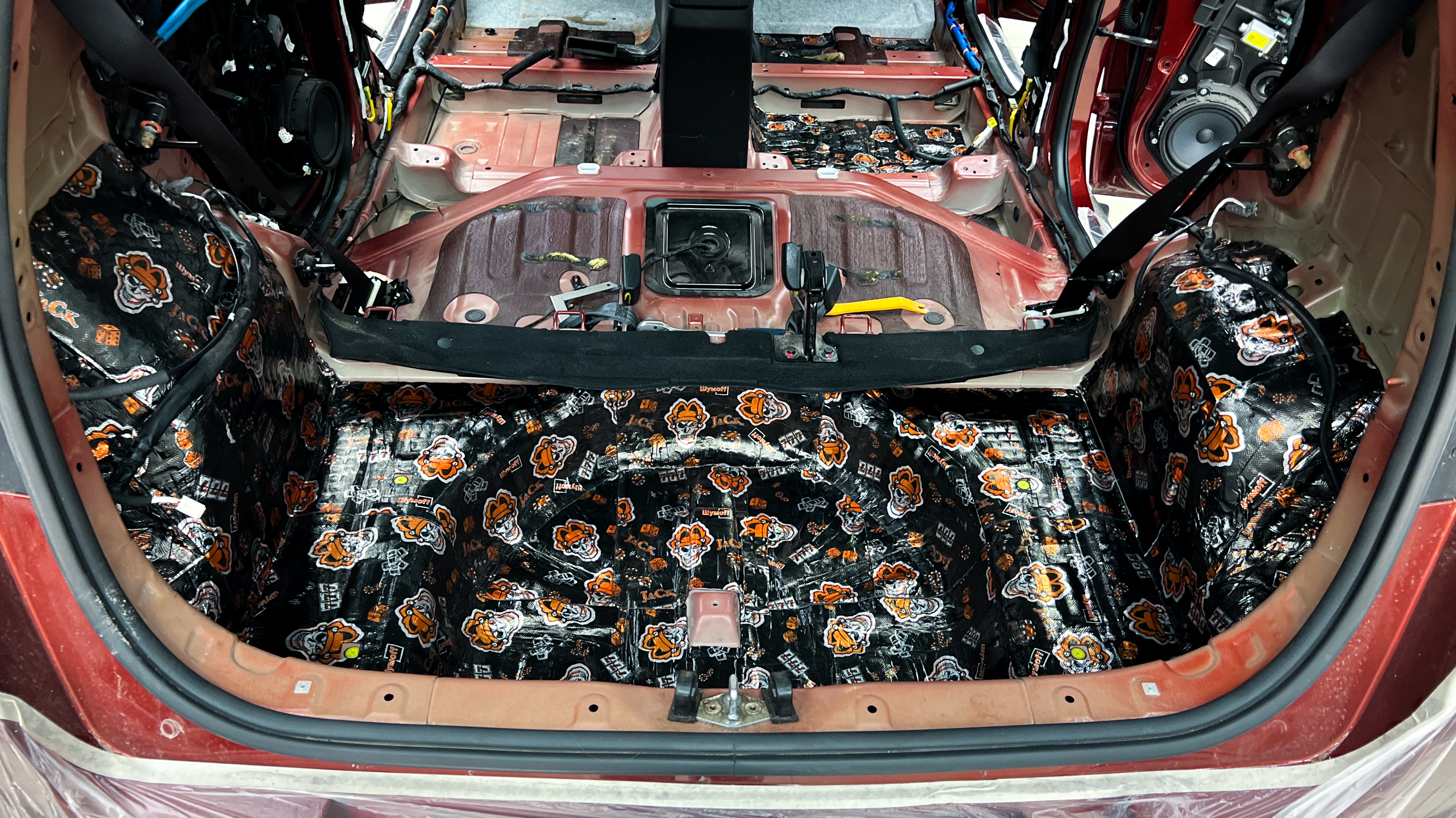 Шумоизоляция багажника Киа Соул Вторым слоем на дно и крылья багажника монтируем Шумофф Герметон 7.