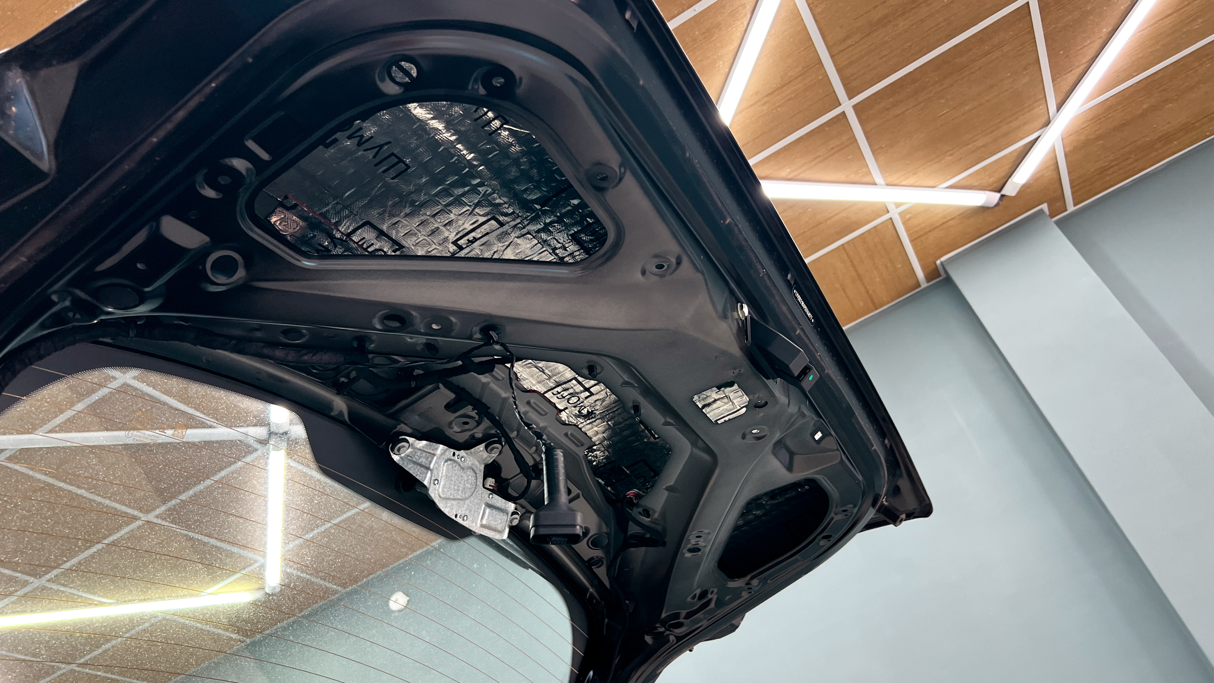 Крышку багажника оклеиваем виброизоляцией Шумофф L2, это позволит свести увеличение ее веса к минимуму, дабы не возникло проблем с открыванием багажника.