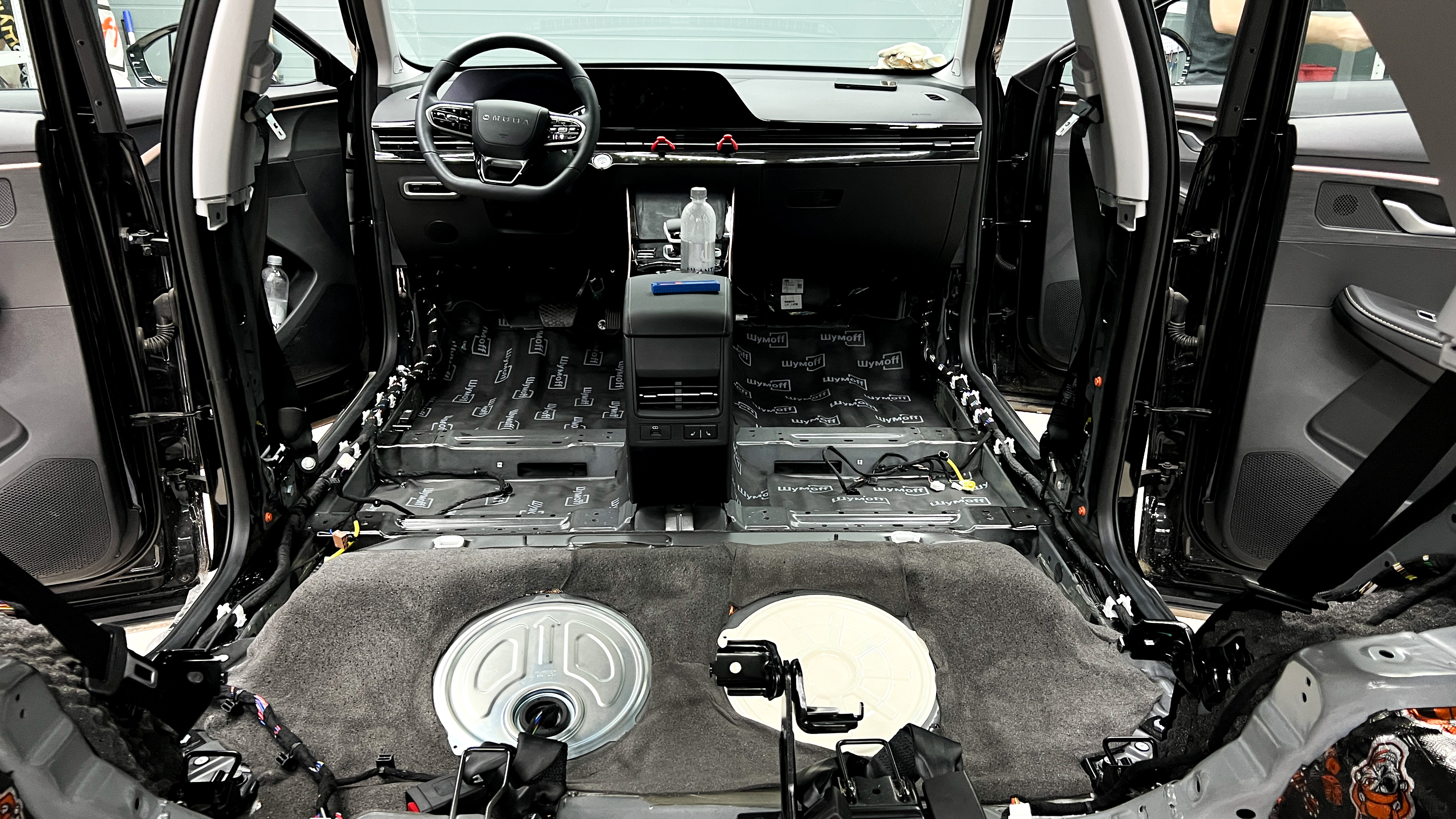 Перед началом шумоизоляции пола на Omoda C5 (Омода С5) необходимо проверить качество адгезии заводской виброизоляции к кузову. Она должна хорошо держаться, в противном, случае её необходимо демонтировать.