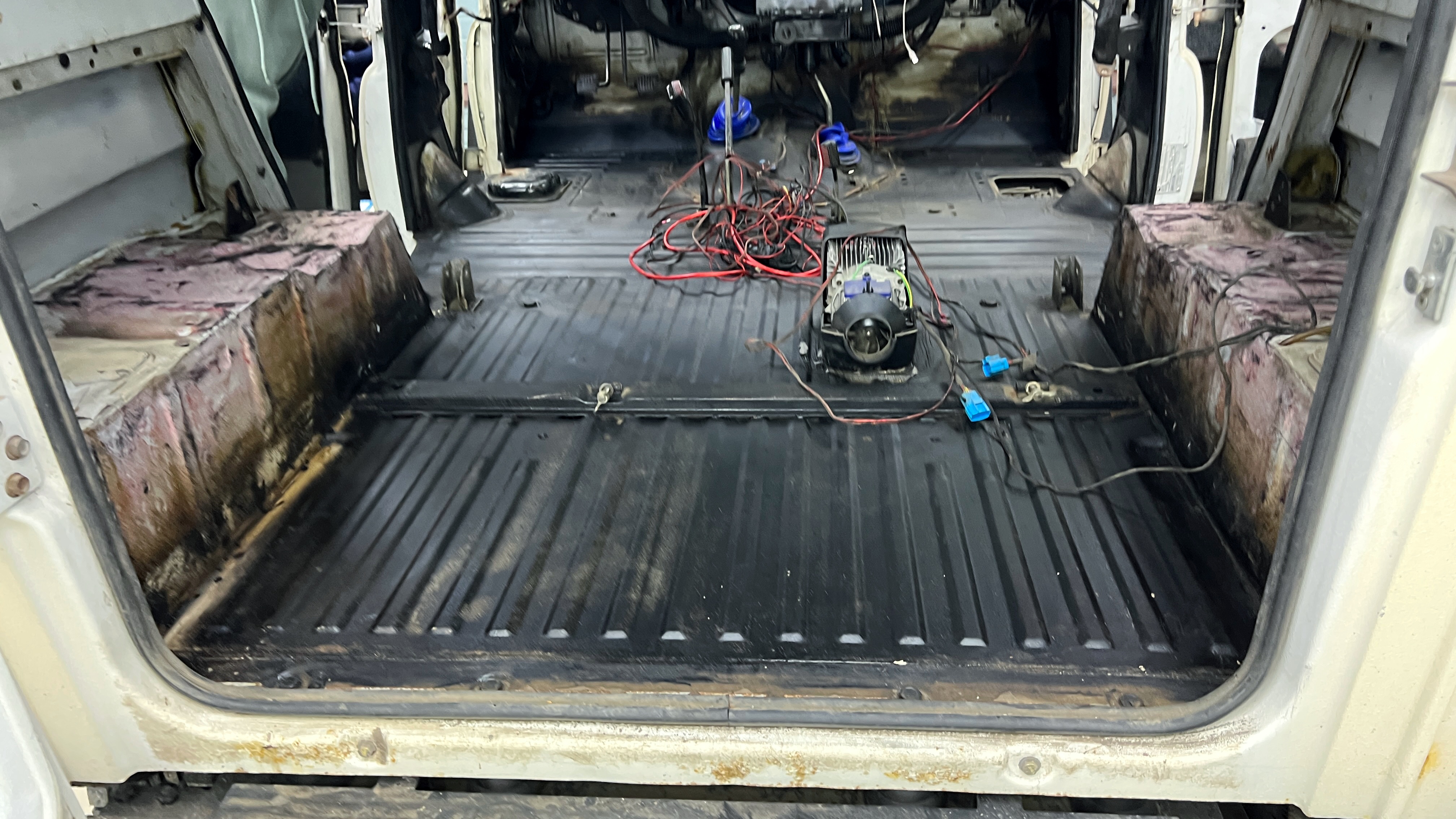 Разбор салона УАЗ Хантер Приступаем к разбору салона: аккуратно вынимаем сиденья, среднюю консоль, обшивки и ковер и складываем все на специальный стеллаж. Перед началом шумоизоляции пола на UAZ Hunter (УАЗ Хантер) необходимо проверить качество адгезии заводской виброизоляции к кузову. Она должна хорошо держаться, в противном, случае её необходимо демонтировать.